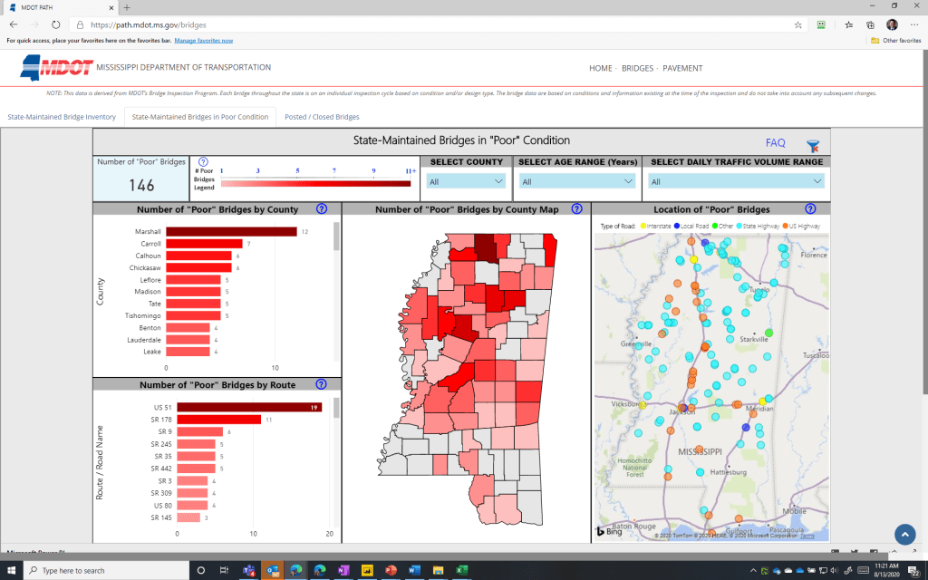 Another good example of accountability and public reporting is the Mississippi Public Accountability Transportation Hub (PATH) site: https://path.mdot.ms.gov/. They used Power BI Publish to Web to create and share a couple of very good reports.
